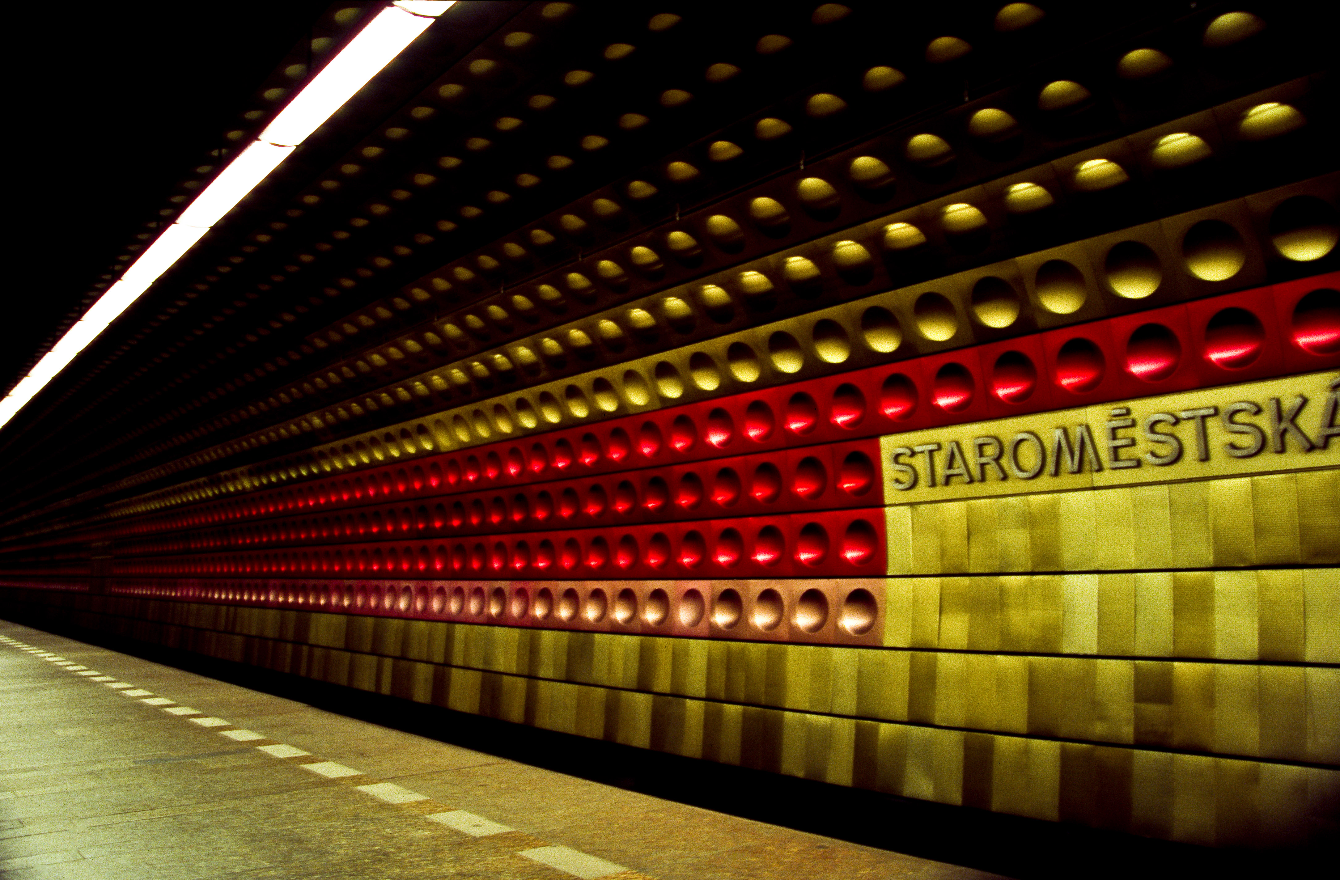 Staroměstská Station, Prague, Czech Republic, 2005: Staroměstská means “old town” in Czech. This futuristic station was completed in 1978.            Canon EOS-1N/Canon 28-105is