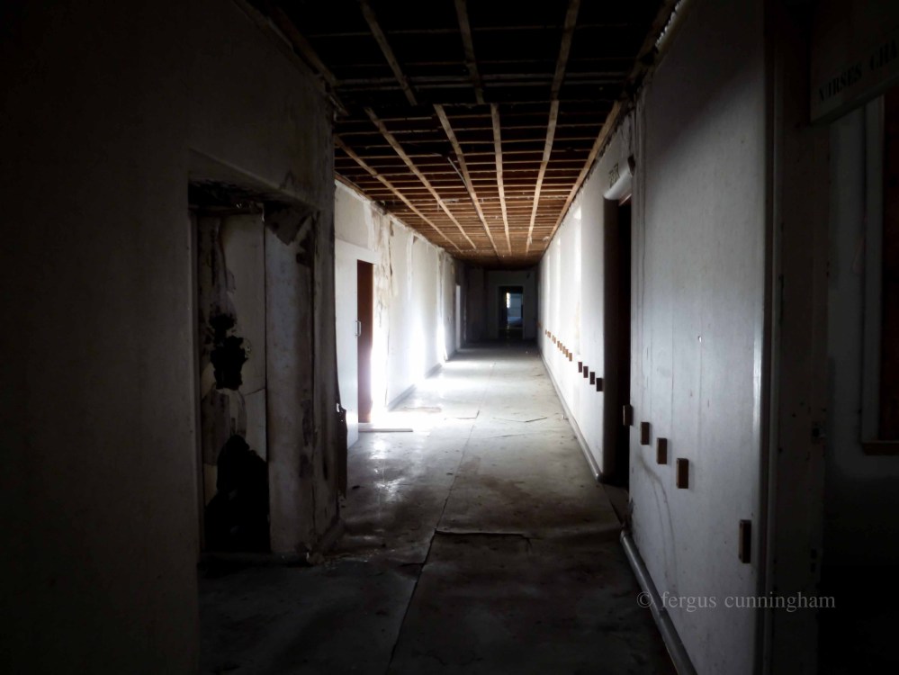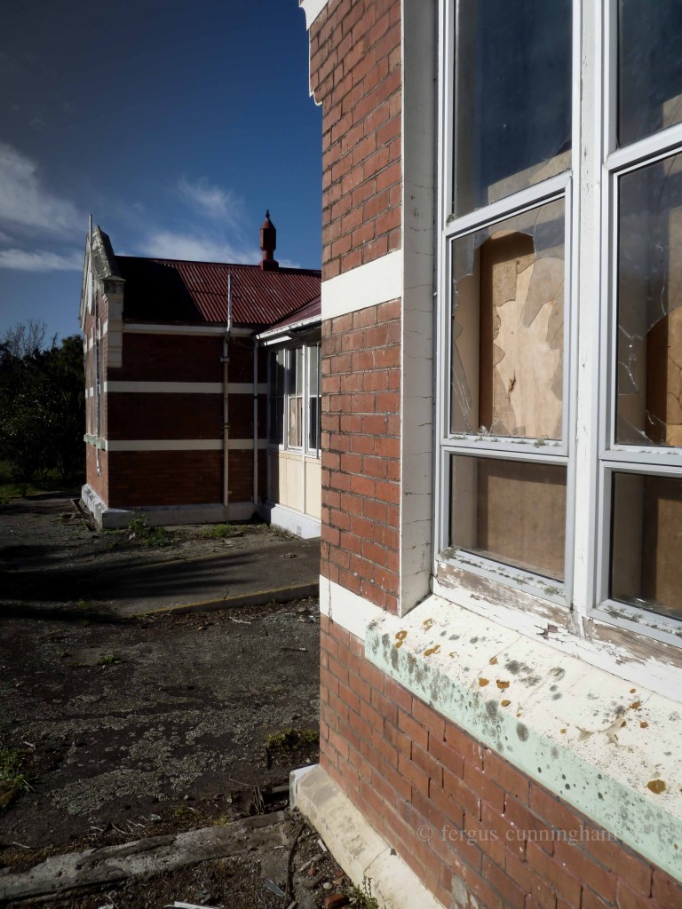 Greytown, Wairarapa, NZ, April 2012: The long-derelict former Greytown Hospital is up for sale. Buildings on the historic 1.5 hectare site date back to 1890 and followed the old Florence Nightingale open-ward plan. Most of the asbestos has now been removed and the main building earthquake strengthened. The hospital (which closed in 1995) had originally been planned to get revamped into a function and accomodation complex. The current owners though have now decided to sell-  it could be yours for around 600 grand…   I jumped the fence for a closer look/shoot and out of curiosity tried the front door-  it opened- inviting me in for a look inside…     Panasonic Lumix FH20